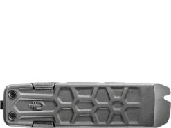 A silver lock knife with partial, grey, leafy, camo overlay on the handle.