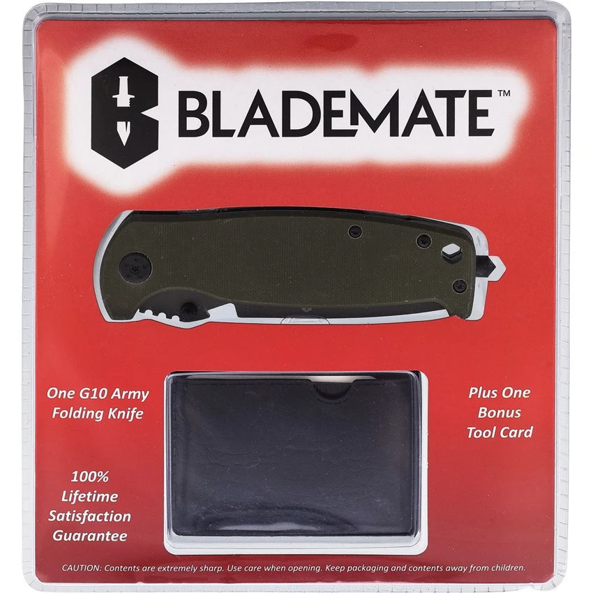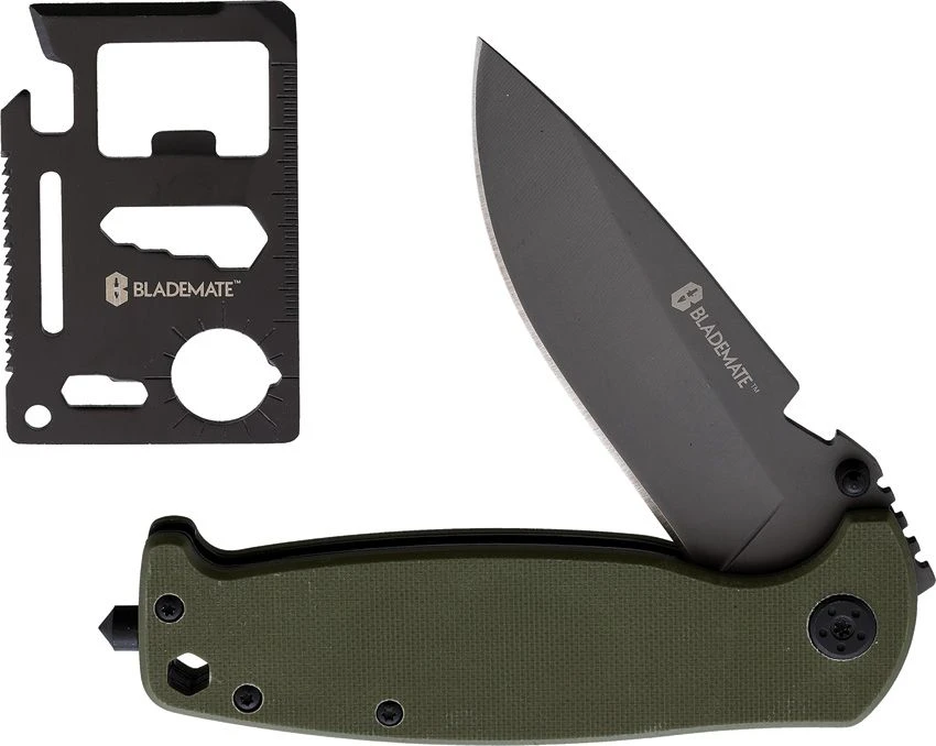 4.88″ (12.4cm) closed. 3.75″ (9.53cm) black finish stainless blade. Bottle opener. Glass breaker. Includes bonus tool card.Â
