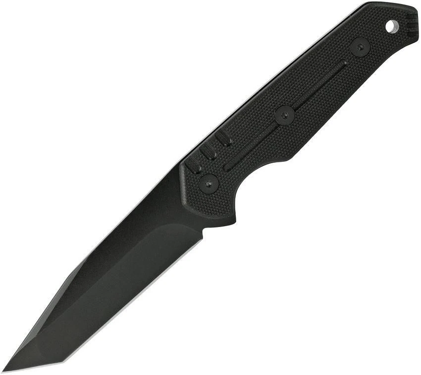 8.25″ overall. 3.75″ black oxide coated 8Cr13MoV stainless tanto blade. Black G10 handle. Lanyard hole. Black nylon belt sheath.