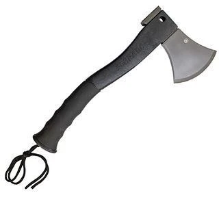 Schrade Survival Hatchet, Titanium Coated 3Cr13 Stainless Steel Head with Hammer Pommel, Black Glass Fiber Filled PA Handle with Ergonomic Black TPR Rubber Grip, Extra Large Ferro Rod with Lanyard Stores Inside Handle, Thermoplastic Belt Sheath